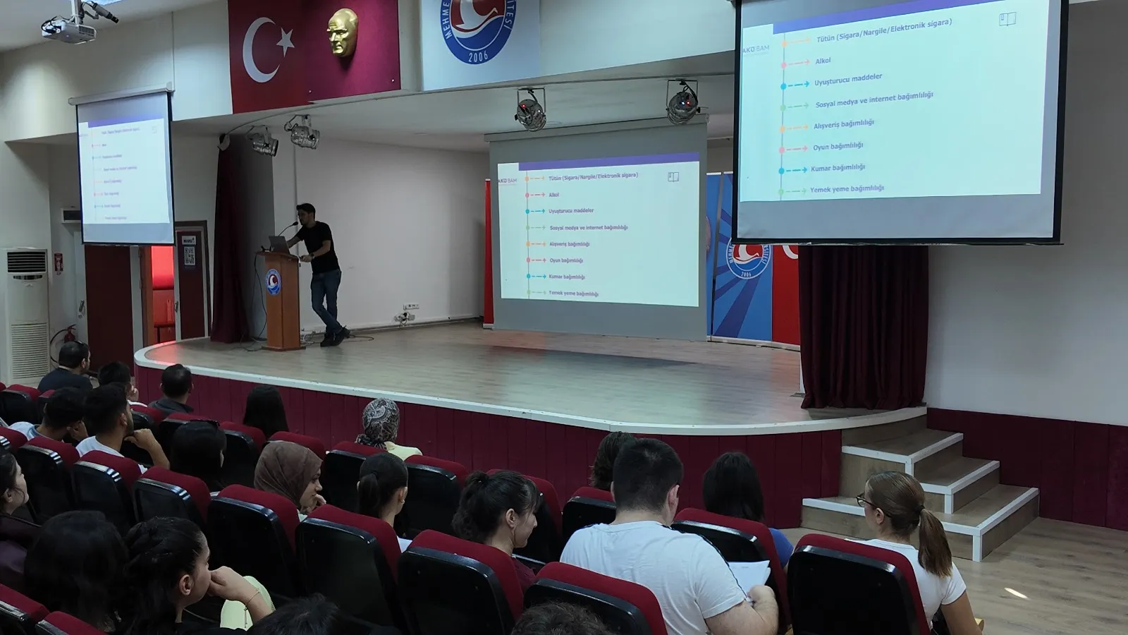 Yüksekokulumuz Müdür Yardımcısı Dr. Öğr. Üyesi Hüseyin Bilal Macit tarafından tüm öğrencilerimize farkındalık oluşturmak ve dikkat çekmek üzere "Bağımlılıkla Mücadele" konusunda eğitim verilerek gerekli bilgilendirme yapılmış, eğitim sonunda da öğrencilerimize bağımlılık konusunda online anket uygulanmıştır.